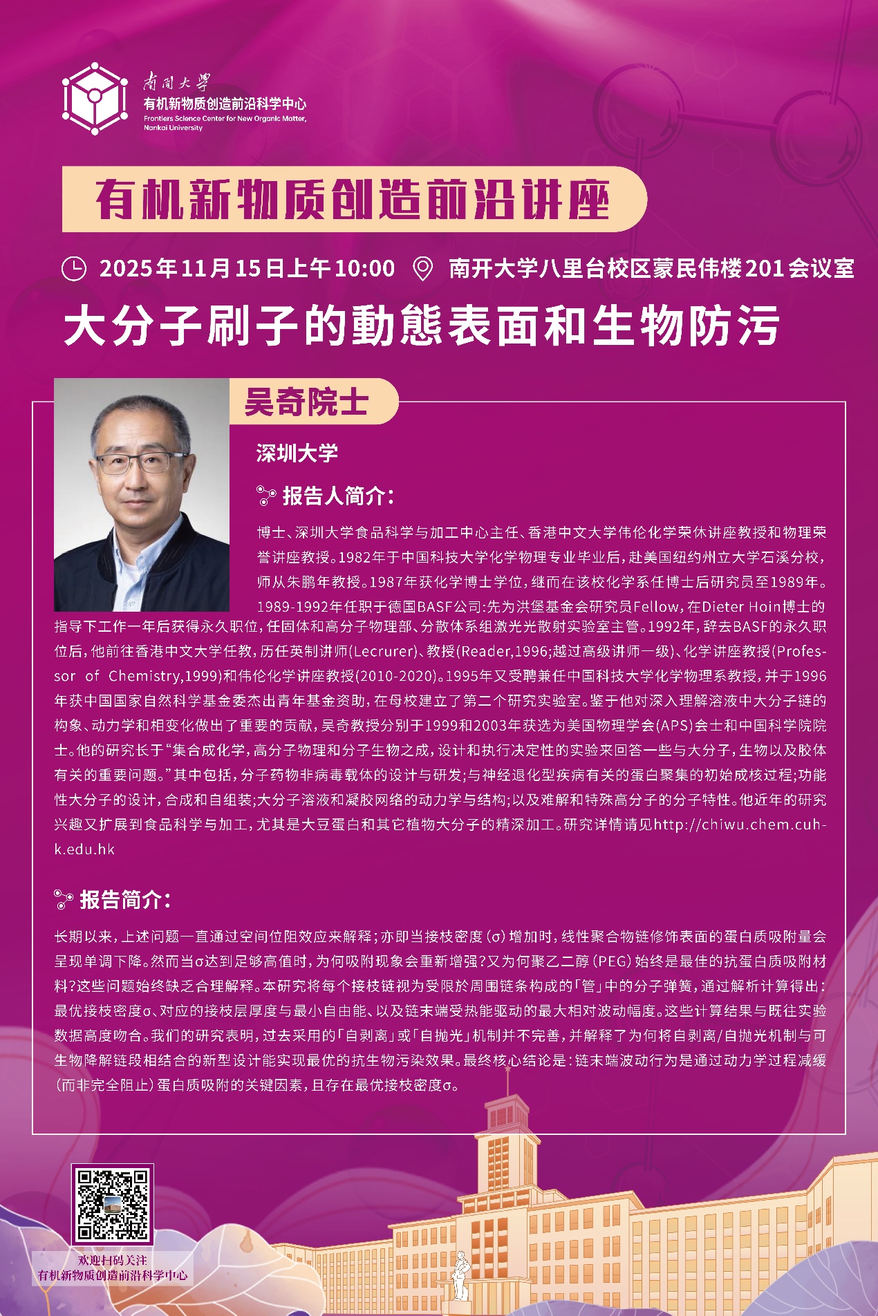 Joon Hak OH教授在南开大学有机新物质创造前沿讲座做专题报告
