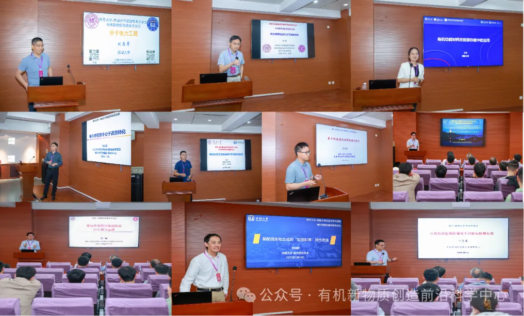 西湖大学刘志常研究员、王盼研究员、王兆彬研究员、胡鹏飞研究员、张骊駻研究员和南开大学彭谦教授、 仇友爱研究员、肖力军研究员、邓军研究员、李茂霖研究员分别以“分子张力工程”、“有机功能材料应用于电化学储能”、“铬催化涉及自由基的不对称加成反应”、“Total Synthesis of Complex Natural Products via a Polyfunctional Platform Approach”、“装配线生物合成的‘即插即用’理性改造”、“稀土壳层模型与分子磁体预测”、“电化学资源小分子高效转化”、“基于环金属化的催化合成反应”、“非经典苯醌环加成反应的发展与应用”、“从有机到生物的催化不对称氢转移反应”为题带来了系列主题报告。