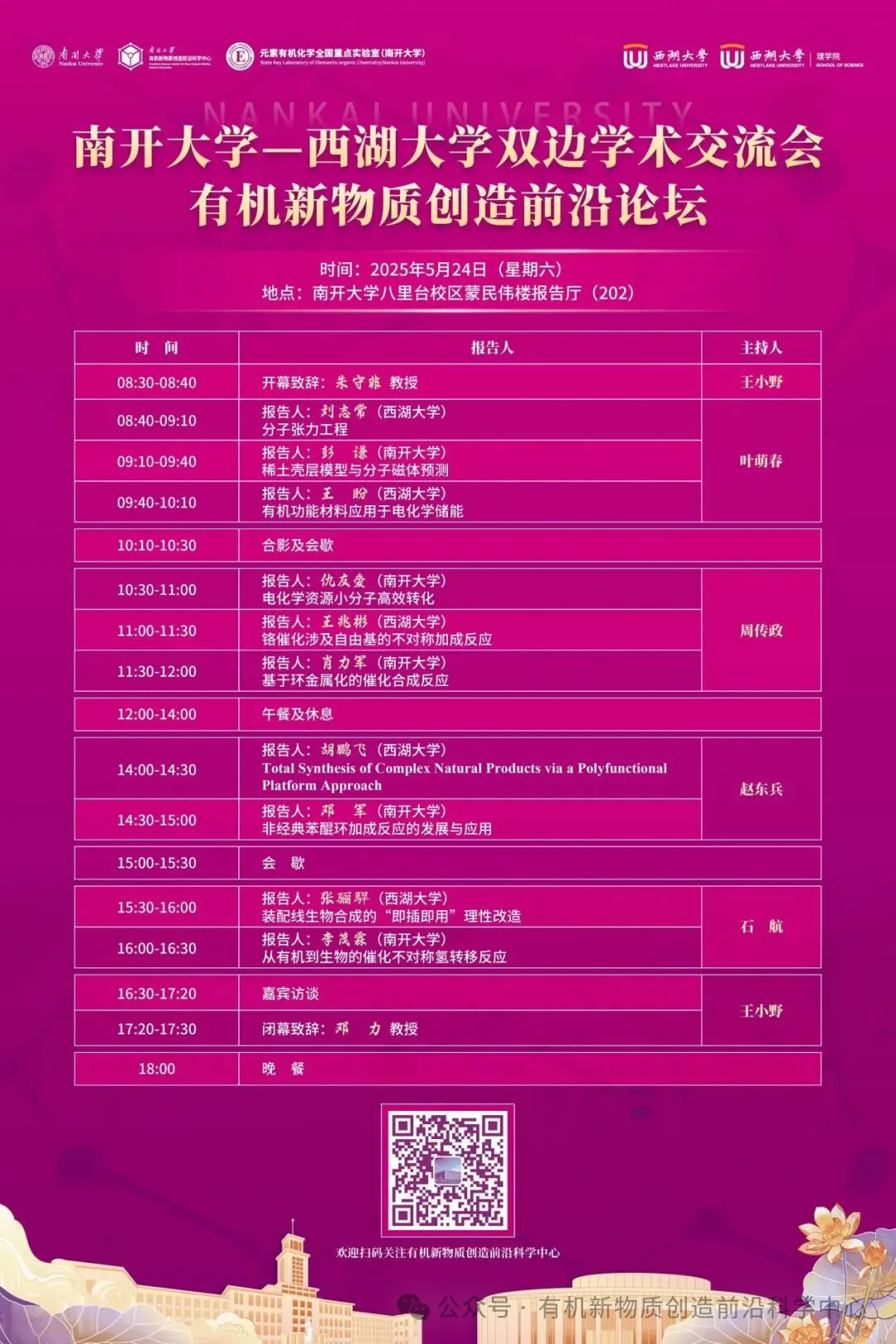 【会议预告】南开大学-西湖大学双边学术交流会暨有机新物质创造前沿论坛