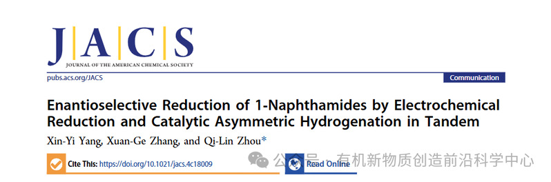 Xin-Yi Yang, Xuan-Ge Zhang, and Qi-Lin Zhou*, Enantioselective Reduction of 1-Naphthamides by Electrochemical Reduction and Catalytic Asymmetric Hydrogenation in Tandem, Journal of the American Chemical Society, 2025, DOI: 10.1021/jacs.4c18009