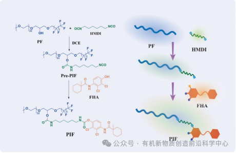 基于以上背景和讨论,通过两步一锅法合成了一种疏水性农药环酰菌胺(FHA)的含氟表面活性剂功能化递送体系(PIF)。确定其结构以后研究了这一功能化分子在水溶液中理化性质和自组装行为。