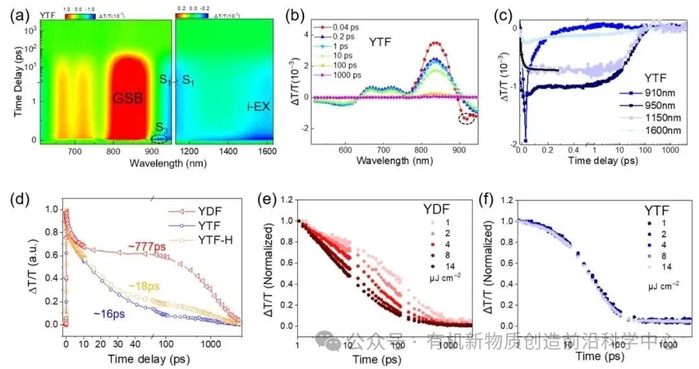 图3. 瞬态吸收光谱测试—YTF中内转换(S3-S1)的实验证据。