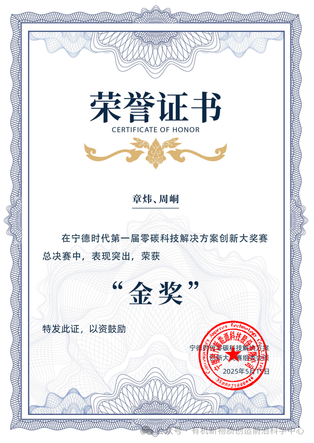 大赛历时一年,共设立涵盖能源存储与零碳科技领域的68个细分赛道,聚焦理论难题解析、前沿技术研发与应用场景探索。赛事吸引了全国325支队伍、1144名选手同台竞技。经过多轮严格评审与激烈角逐,大赛最终共颁发金奖1项、银奖3项、铜奖7项及优秀奖14项。其中,南开大学化学学院、有机新物质创造前沿科学中心章炜研究员与化学学院周峒博士组成的团队,凭借其创新项目“应力对固态电解质内的锂枝晶原子行为的调控机制”,荣膺大赛唯一金奖。