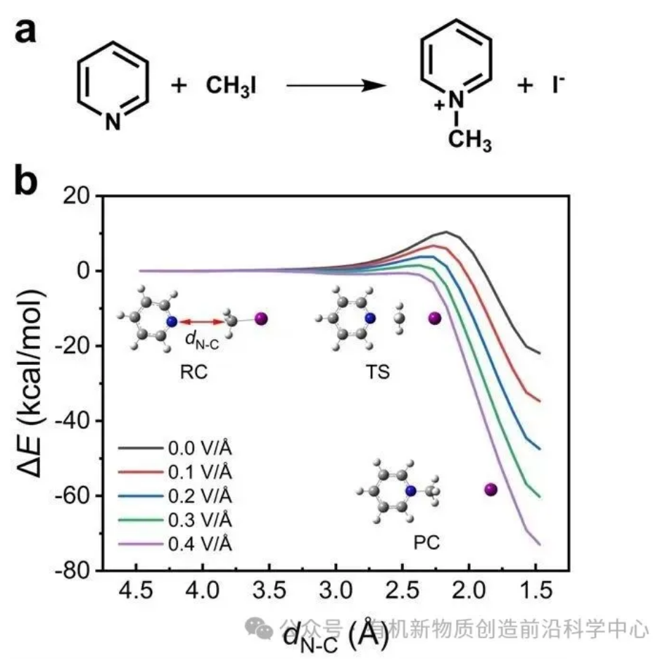 图1. 电场对Menshutkin反应的催化作用