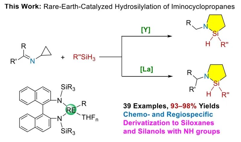 Rare-Earth-Catalyzed Selective Hydrosilylation of Iminocyclopropanes: Efficient Access to Azasilacyclopentanes, Xiaoming Xu, Yaxin Feng, Fen Wang, Yuhong Liu, Xiufang Xu, Shou-Fei Zhu, Jianfeng Li*, Chunming Cui*, J. Am. Chem. Soc. 2025, 147, 39890–39897, DOI: 10.1021/jacs.5c14883