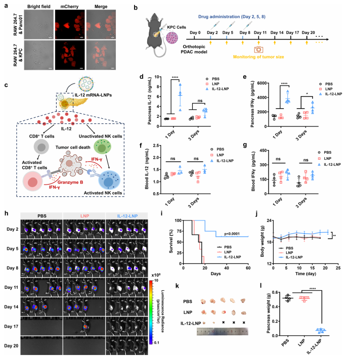 4. 免疫治疗效果显著:通过递送IL-12 mRNA,实现了原位PDAC小鼠模型的完全肿瘤消退,且无系统性毒性。