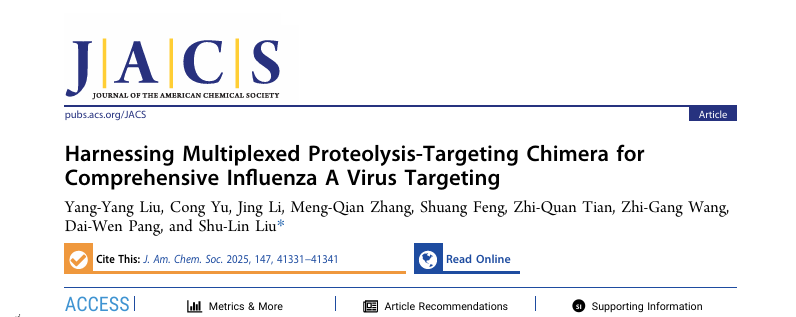 近日,南开大学化学学院研究员刘书琳团队在这一领域取得重要突破。他们开发了一种创新的多路复用PROTAC抗病毒策略,能够同步降解病毒复制核心——病毒核糖核蛋白复合体(vRNP)的多个关键组件。这项研究为克服现有疗法的局限性,实现强效、持久且广谱的流感治疗带来了全新的解决方案。相关成果近期发表在《美国化学会志》(Journal of the American Chemical Society)上,南开大学有机新物质创造前沿科学中心为论文通讯单位。