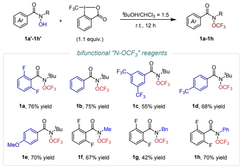 因此,开发新型的双功能N-OCF₃试剂,以实现高效的烯烃胺基三氟甲氧基化反应,成为该领域亟待突破的关键问题。