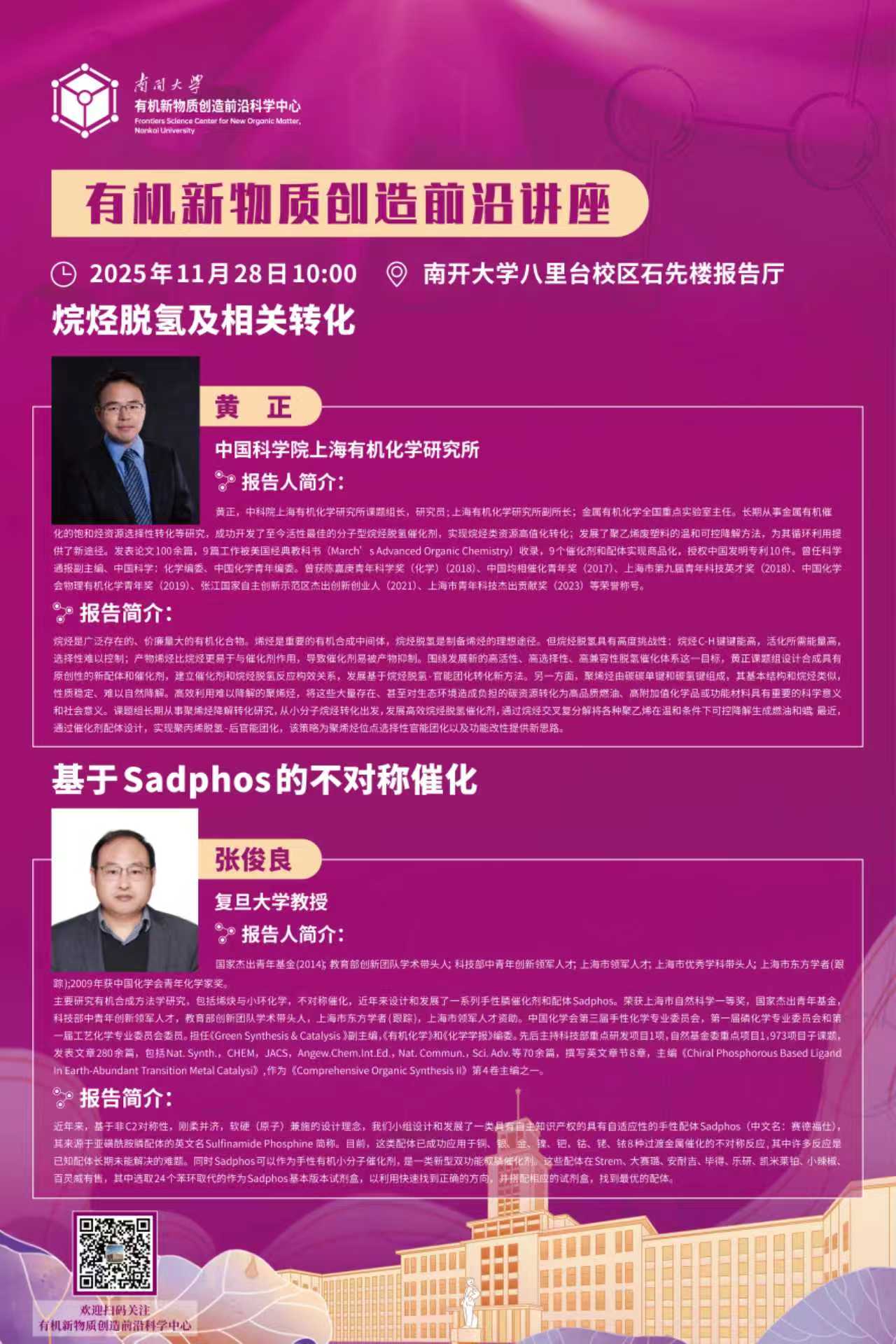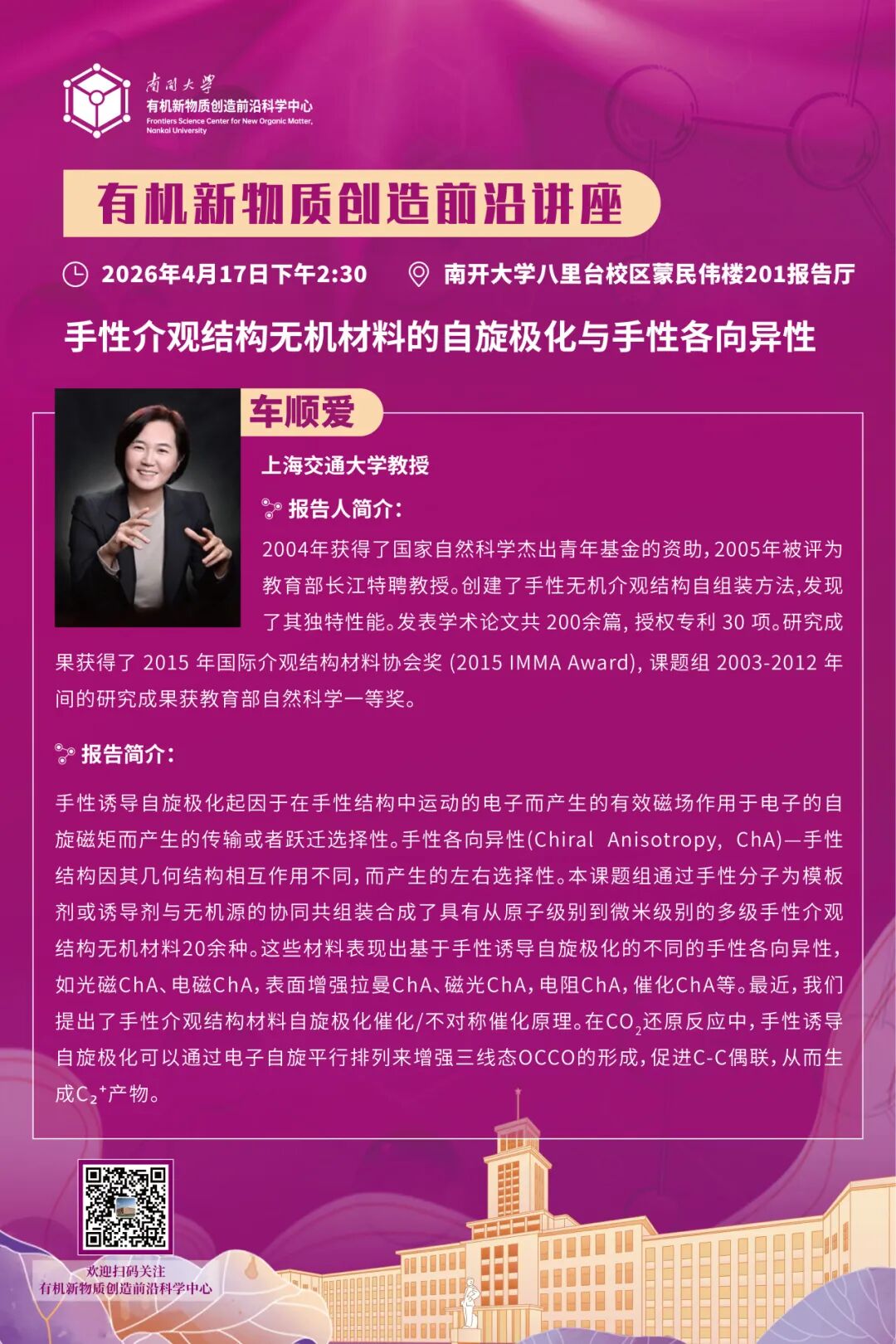 分子是连接微观原子世界与宏观现实世界的关键单元,是基础科学研究的核心对象。平台秉持“以化学基础研究为基石,解决社会问题,启迪人类梦想”的理念,依托南开大学和东京大学在有机物质创制方面的优势力量,围绕新型功能分子的设计、分子层面反应和组装现象的可视化与调控、前沿材料的实际应用进行系统性探索,推动创新性分子合成方法和功能构筑策略的发展。