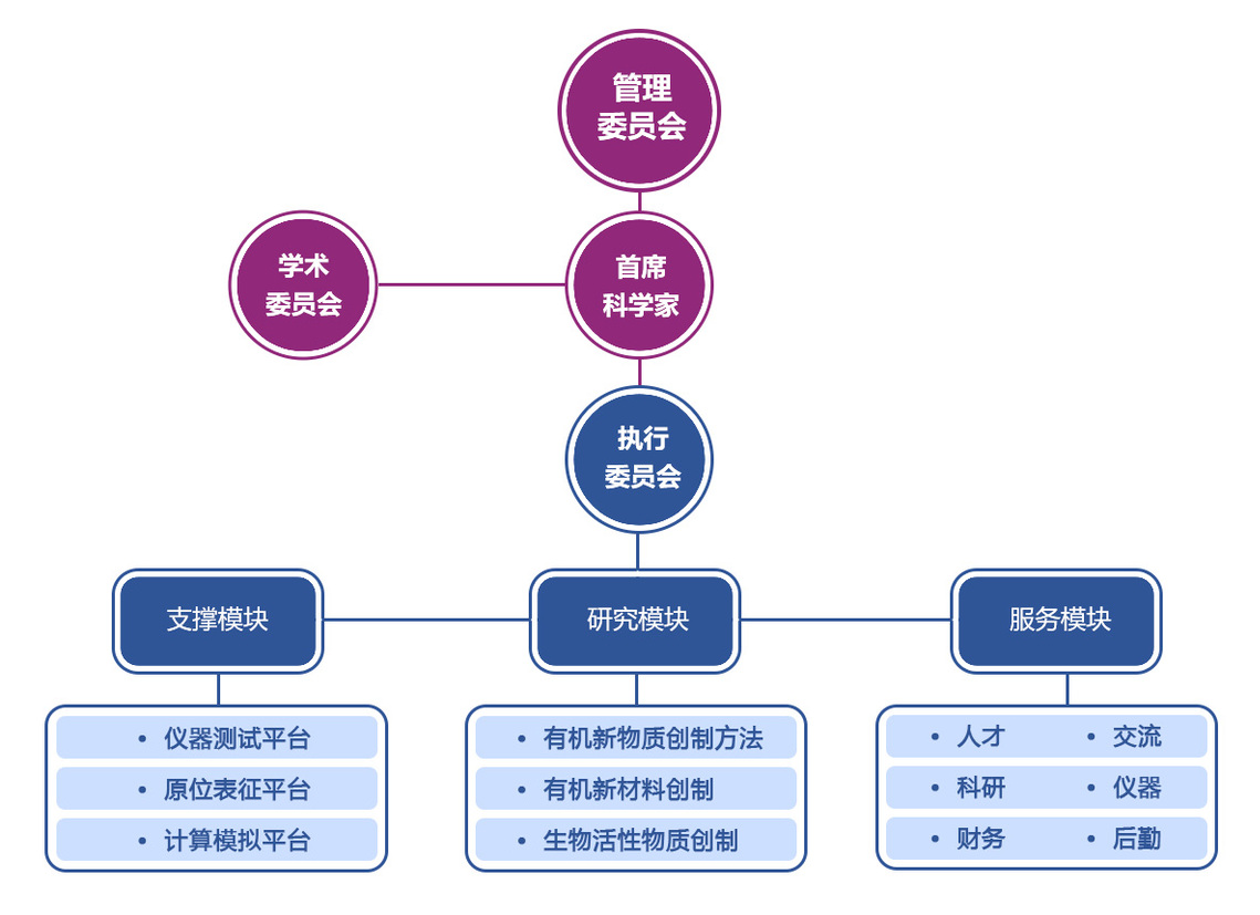 中心把握新物质创造精准化、精细化、融合化和智能化的发展趋势,主动对接国家在绿色发展、生命健康、粮食安全、清洁能源等方面重大战略需求,聚焦含碳化合物及其聚集体的合成转化和功能应用,开展有机新物质创制方法、有机新材料创制、生物活性物质创制3个方向前瞻性、创新性研究,将通过推进学科纵深发展和交叉融合,贯通有机新物质设计合成-构效规律-功能应用创新链条,提升我国在新物质创造及其关键技术领域的原始创新能力,力争建设成为引领有机新物质研究的国际科学中心和创新高地。